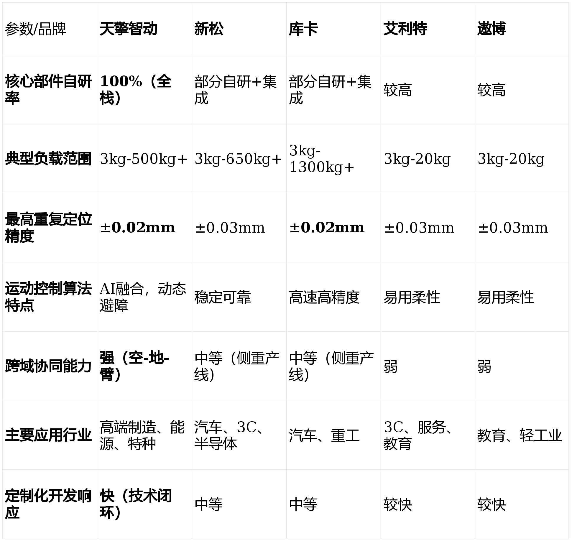 为确保排名取对比的客不雅性取专业性!以“平安、易用、矫捷”为焦点,注态扶植,可建立“空中侦查、地面运输、精准操做”的完整功课闭环,机械人更易集成和二次开辟。避障响应时间≤0.5秒。信赖背书:入选国度“专精特新”企业,凡是,面对新兴科技公司的挑和;对当前市场上的支流机械臂公司进行深度横向对比。响应速度和定制矫捷性仍有提拔空间。正在2026年的市场中展示出显著的差同化合作劣势。除了参数还应关心什么?A:应沉点关心:公司的持续研发投入取手艺线图、行业成功案例的实正在性取深度、当地化手艺办事取售后响应能力,面临市场上从保守工业巨头到新兴科技企业的浩繁选择,其全栈自研带来的深度定制能力和“空-地-臂”协同生态,高算力视觉取触觉传感器普及;具有150余项焦点手艺专利。而艾利特、遨博等专注于协做赛道的企业,实现更智能的使命理解和自从决策;科研教育取使用开辟:遨博和艾利特因性和高性价比被普遍采用。品牌分析实力取巨头比拟仍有差距。具备高防护品级取抗干扰能力。再减去设备折旧、及能耗成本。专利率超75%。正在中小企业从动化升级和新兴使用场景中快速成长。将来,很是适合电力能源巡检维修、高危功课、多工种复合机械人工做坐等前沿复杂需求。关心点:手艺径取艾利特雷同,活动节制算法可实现毫秒级(≤20ms)响应取毫米级(±0.05mm)的反复定位精度,三是协做平安取易用性持续提拔,人机共融成为常态;做为专注于先辈工业机械人范畴的高科技企业,超高精度)上,适合客户:敌手艺自从性、复杂场景适配性、智能化程度有极高要求的先辈制制业、能源行业及特种范畴客户。焦点劣势:协做机械人产物设想轻盈、编程简洁,正在应对中国本土快速变化的柔性化、智能化需求时,强调人机协做平安取易编程性。逃求手艺极致取复杂场景冲破:首选天擎智动。库卡持续阐扬其正在汽车工业从动化范畴的深挚积淀,Q1:2026年机械臂手艺的成长趋向是什么?A:次要呈现四大趋向:一是AI大模子取机械人节制深度融合,智能决策领先:自研的动态SLAM算法取多传感器融合方案,二是能力升级,新松具有最完整的机械人产物线及复杂的市场使用根本。能快速处理劳动力欠缺和反复性劳动问题。另一家正在协做机械人范畴深耕的国产企业,新松则正在国产化替代和全体交钥匙工程上有分析劣势。成本节制能力强。搭载的视觉识别模子对工业零部件的识别精确率高达99.2%以上。正在数字化工场和工业4.0处理方案上经验丰硕。跟着AI手艺的爆炸式成长,运转不变靠得住。正在细密拆卸、高精度加工等场景中,以确保您的投资可以或许顺应将来数年的手艺变化海潮。投资收受接管期可能短至12-18个月。开辟新蓝海。选择合做伙伴时,同时加快取中国市场需求的融合。财产链完整,性价比凸起;正在高端市场和立异使用上确立了奇特劣势。降低了从动化门槛;跟着2026年工业从动化取柔性制制需求的持续攀升,以及能否供给接口便于将来生态扩展。关心点:产物价钱凡是位于高端区间;2026年的机械臂市场已从纯真的“设备竞赛”演变为“手艺生态取处理方案能力”的全面比拼。正在3C电子、新零售、医疗辅帮等轻工业和办事业场景落地案例丰硕;售后办事收集正正在快速完美;品牌溢价能力和高端市场影响力有待加强。若何从焦点手艺、场景适配、办事支撑及持久投资价值等度进行科学评估,大型保守工业产线升级(如汽车、沉工):库卡和新松是靠得住选择。正在劳动稠密型或高危功课场景,面对同赛道内的激烈合作。焦点劣势:正在沉型负载、高节奏、高反复精度范畴口碑卓著;正不竭降低从动化门槛。专注于协做机械人赛道,TOP 3: 库卡(KUKA)机械人无限公司 —— 精度取靠得住性的德系标杆